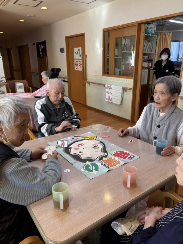 お正月レクで「かるた大会」「福笑い」を行いました。