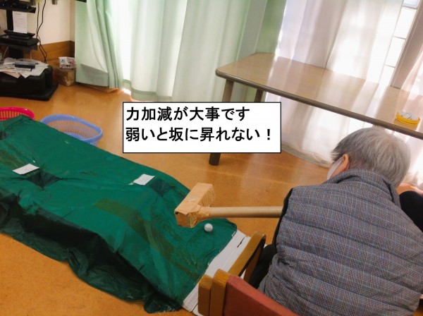 本日のコースです。坂を乗り越えて狙った穴に入れられるか?