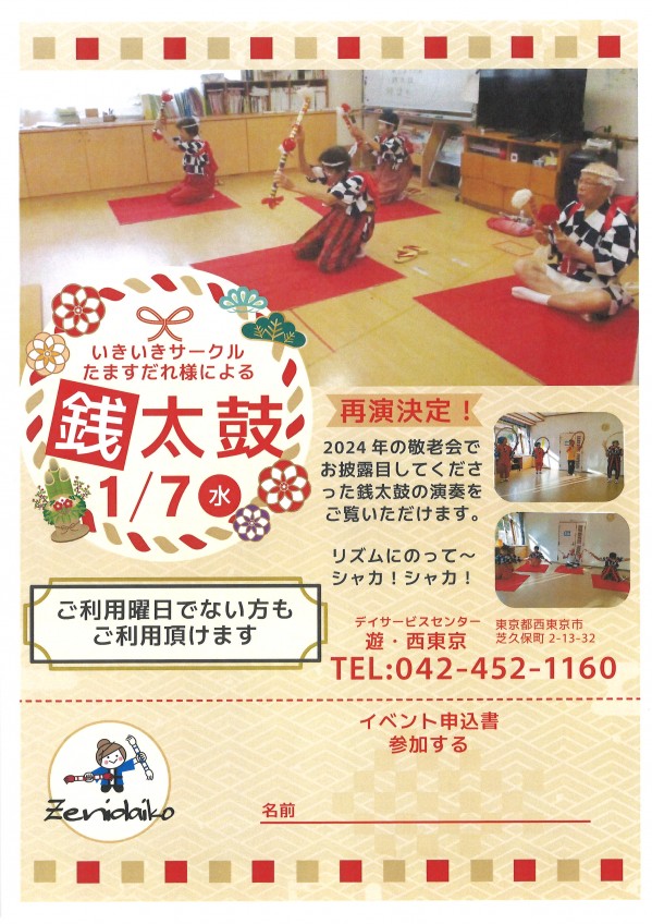 2024年の敬老会で披露して下さった銭太鼓に新たな演奏も!楽しみですね!