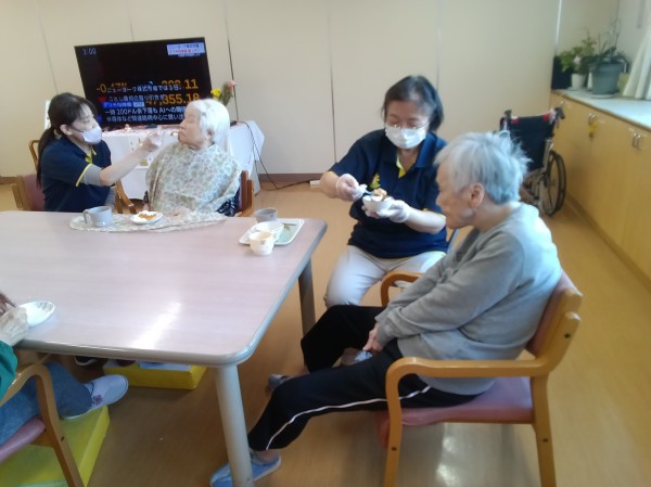 今回はホーム長の力作の手作りおやつを皆様で召し上がりました(≧▽≦)❤