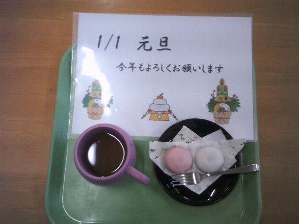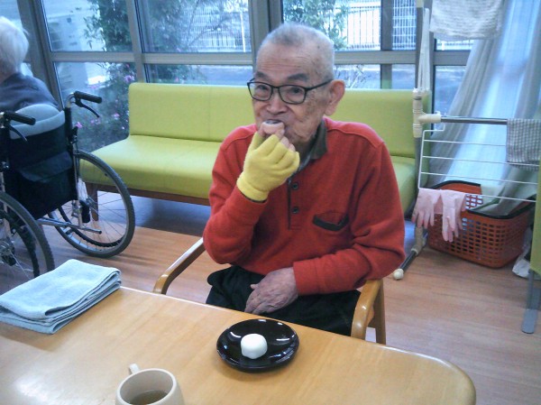 今日は1/1 おやつに紅白饅頭をお出ししました。 餡子がいっぱい入っていて嬉しいな? と喜ばれておりました(*^^)v