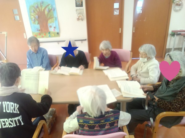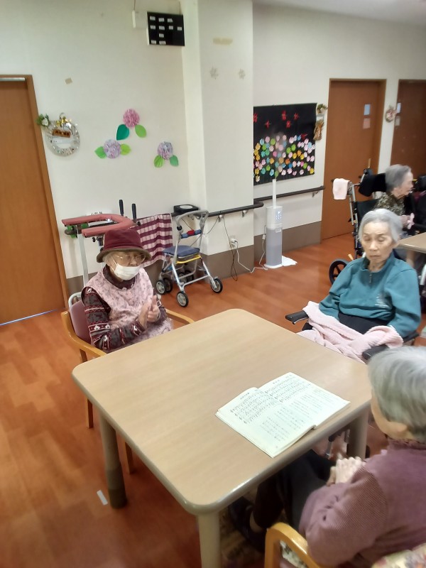 職員も一緒に声を出しながら、懐かしい歌に皆様元気にはつらつと歌われていました!!