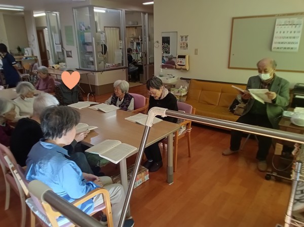 「一月一日」「冬景色」「スキー」などの冬の歌を10曲ほど、皆さんと一緒に歌われました。