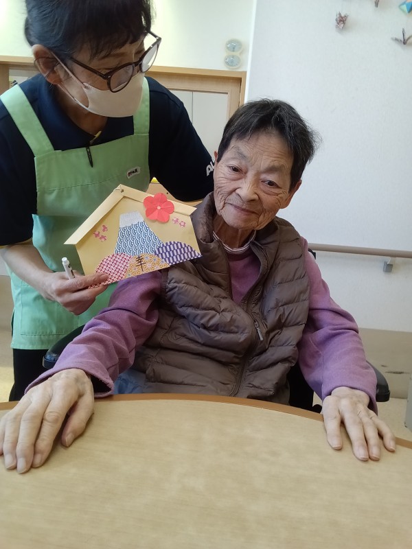 新年の挨拶をして利用者様に"絵馬”を渡しました!