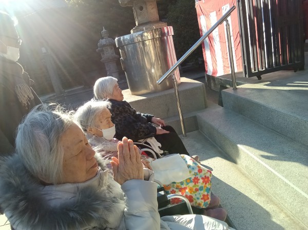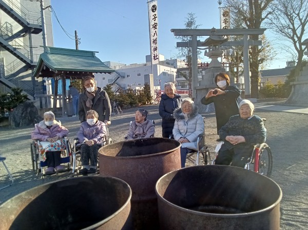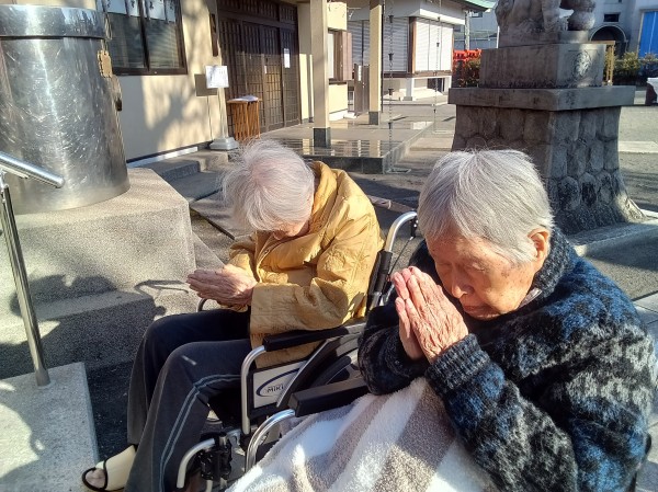 普段はあまり、外に出られない方や、外に出たがらない方々も、初詣に行きましょ!とお誘いすると、「お参り?行きたいねぇ」と、二つ返事でお出掛けになりました(*^-^*)