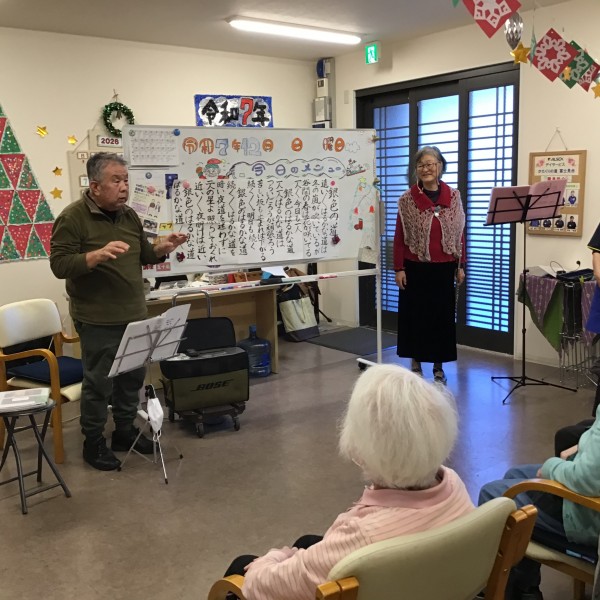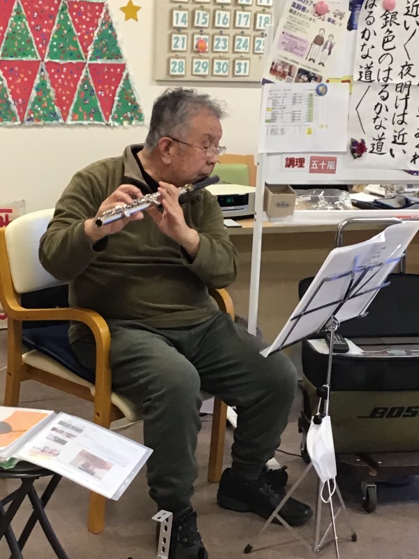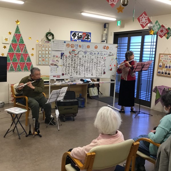 フルート演奏・歌を皆様の前で披露してくださいました。ご利用者様も普段聞けない音色に感動されていました。