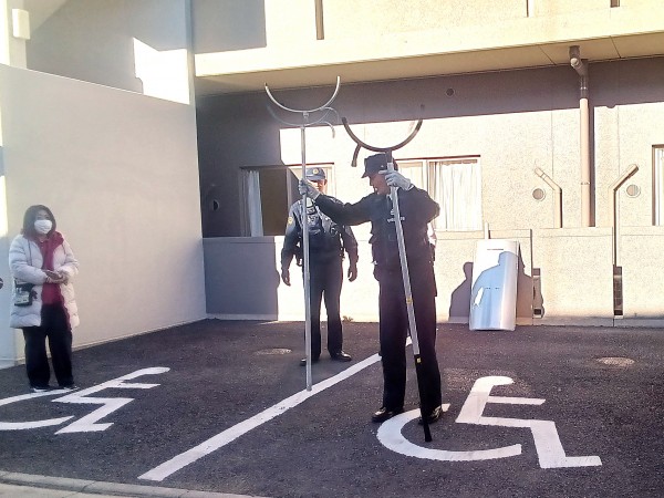 その後、朝霞警察署の警察官より、さすまたの使い方や不審者の対応方法、