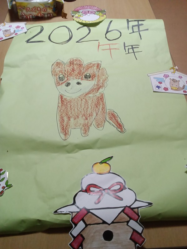 今年は、午年なので模造紙の真ん中に