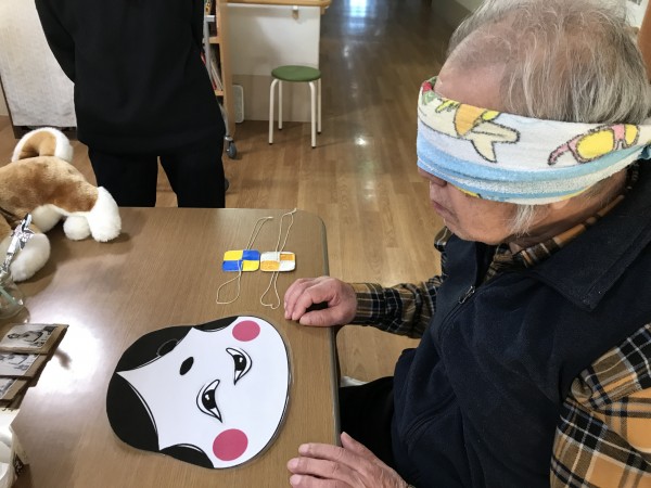 やっぱり元旦レクは福笑い!皆でたくさん楽しめました。