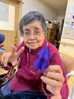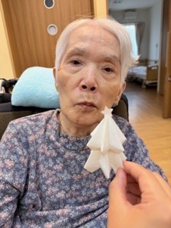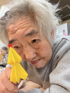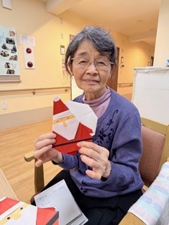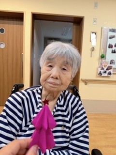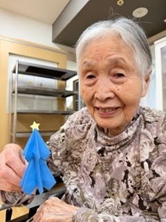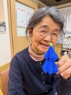 折り紙、折れる方は折って頂き、折れない方は色を決めて頂き様々なツリーが出来ました