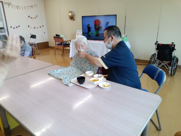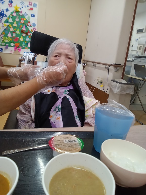 いつもスタッフブログをご覧くださりありがとうございます(≧▽≦)❤ 今回は食事介助の風景をお送りいたします。介助も色々ありますが・・・私的には食事介助が1番気を使います。姿勢の確認、リクライニングの車椅子だと角度を気にしたり、覚醒状態、口腔の状態、むせ込み、摂取時間、と気に掛けることが沢山のあります。また1番コミュニケーションが取れる時間でもあります。日々の安全と楽しい食事の時間を過ごし頂きたいと思います。