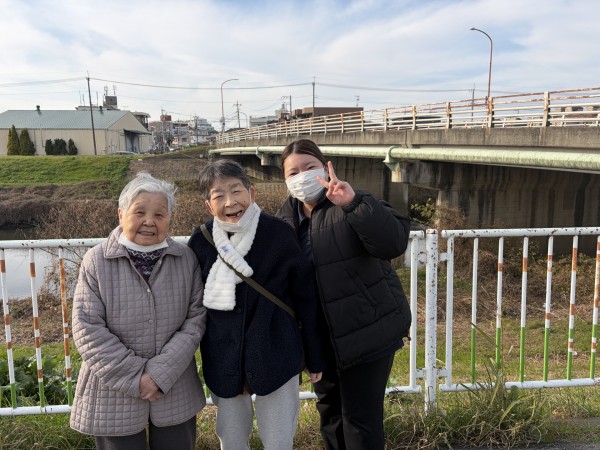 今日は天気も良く、川沿いの歩道をご入居者様と散歩しました!