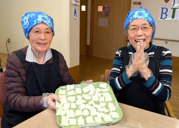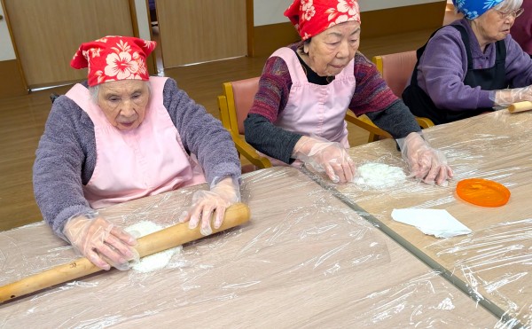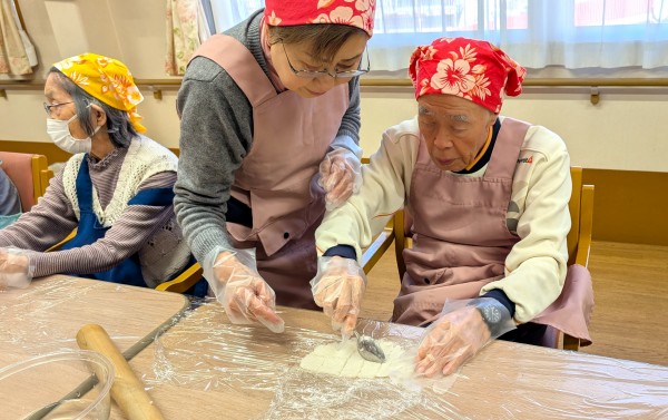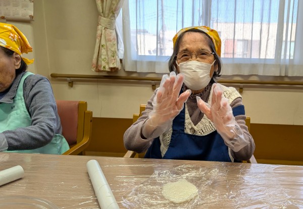 生地がいい感じになってきたら、お餅の形に切っていきます☆