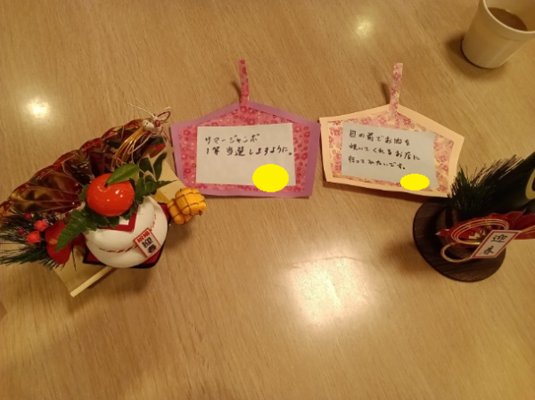 ご自身の好きな色、模様の絵馬を作り願い事をして飾りました!