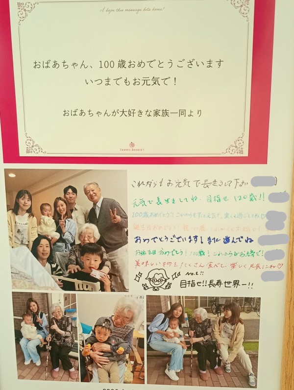 ★☆Happy Birthday100歳お誕生日にM・T様のご家族様お孫様からの素敵なプレゼント♬2026年令和8年✨ 『みんなの家 三橋6丁目 介護ブログ』☆★