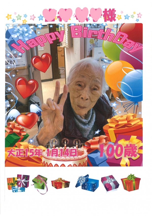 本日1月14日、100歳のお誕生日を迎えられたご利用者様をご紹介します。