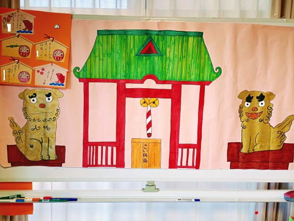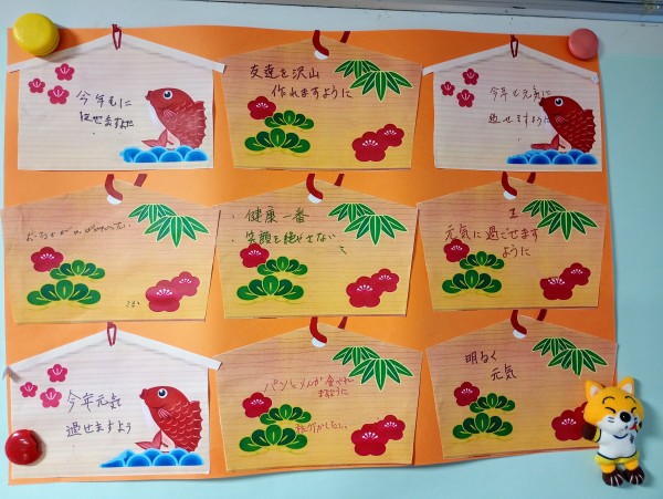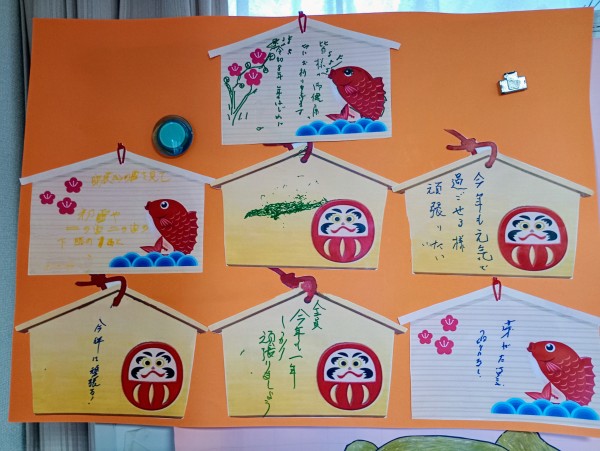 今日は、新年を迎えみんなで、絵馬作りをしました。