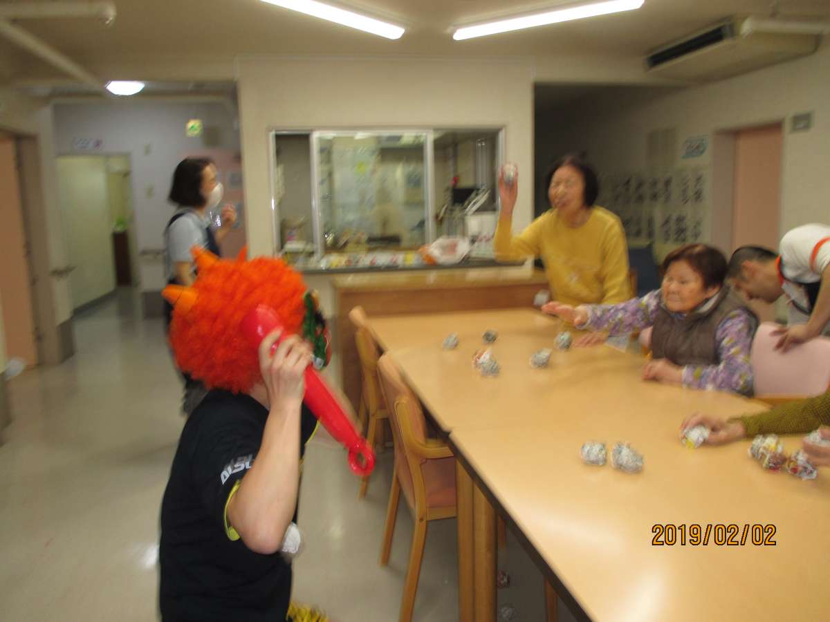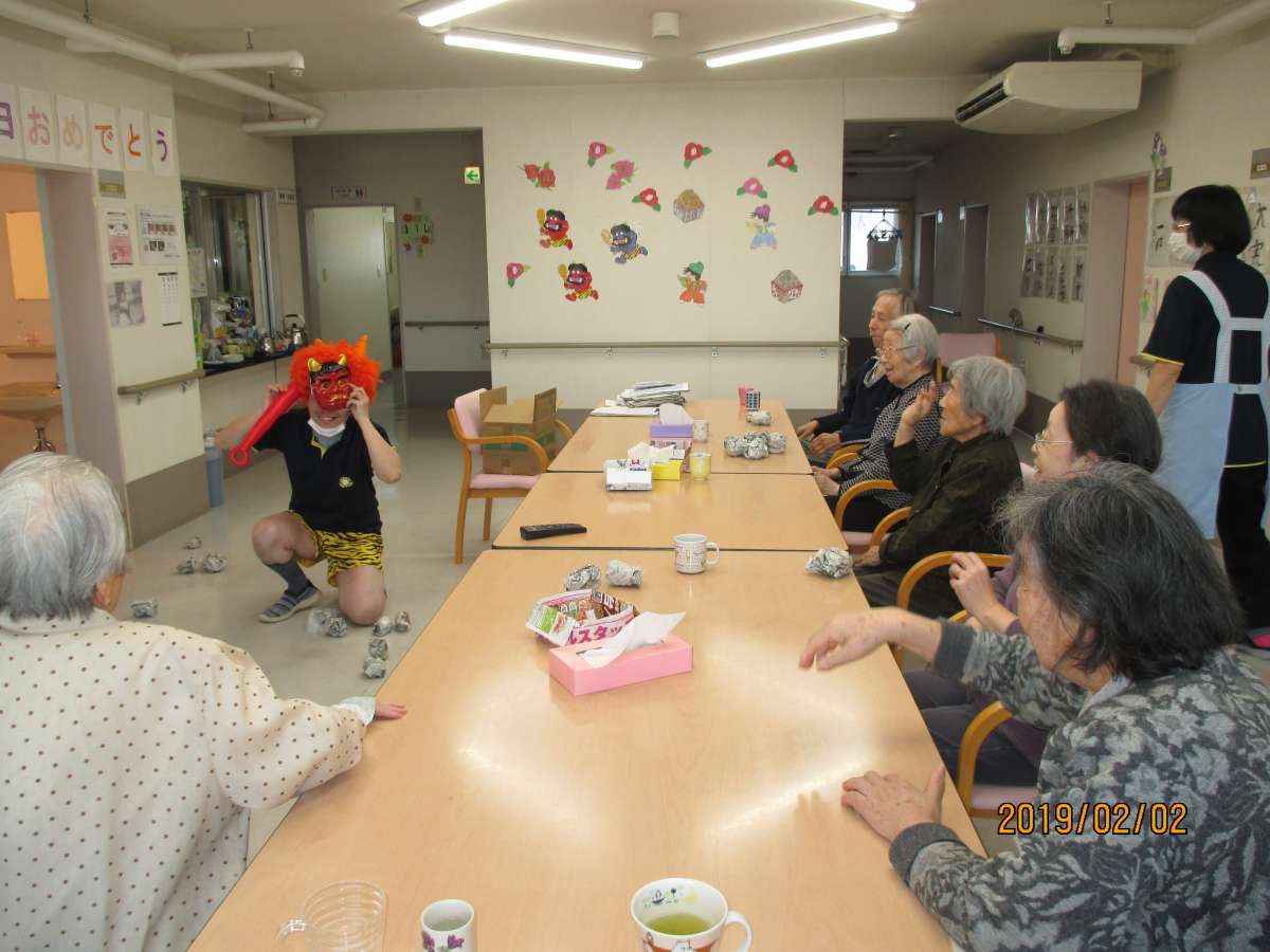 男性職員が鬼になり各階で節分会です