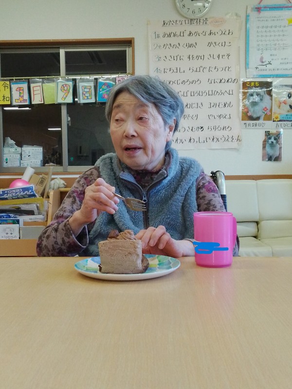 皆様と一緒にケーキを召し上がられ「ケーキも美味しいけど今度はおせんべいも出してね!」