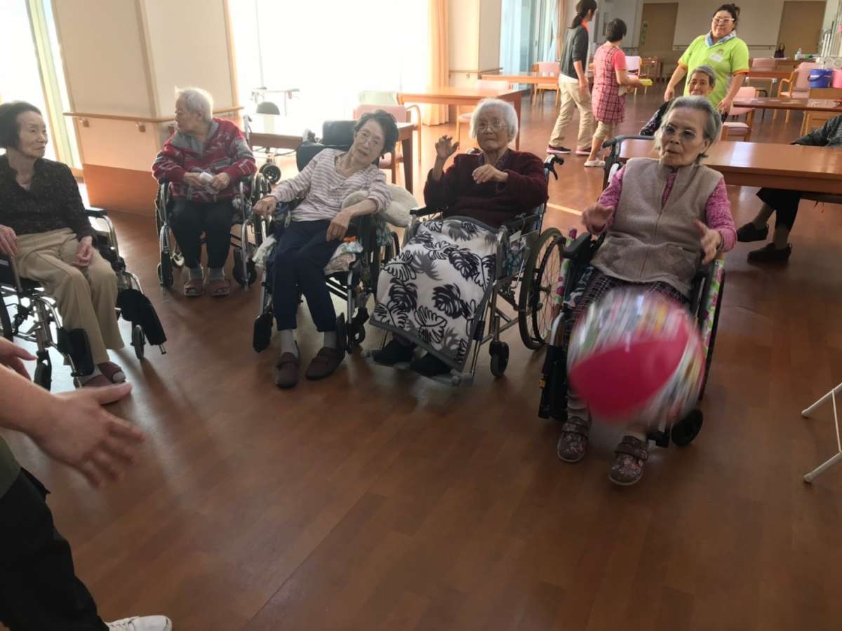 てなことで本日のレクレーションはバスケットボール…だとハードすぎるので、まずはボールに馴れる事から