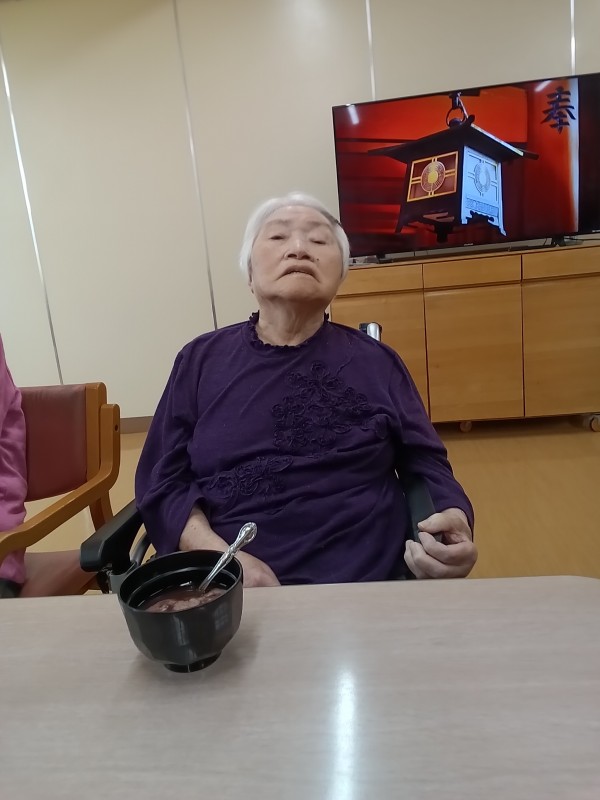 みんなの家松伏特製の豆腐と片栗粉を練って作ったのど越しの良いおしるこデス❤