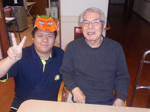 豆まき後は鬼と仲良くなり、一緒にはいチーズ(^^)v