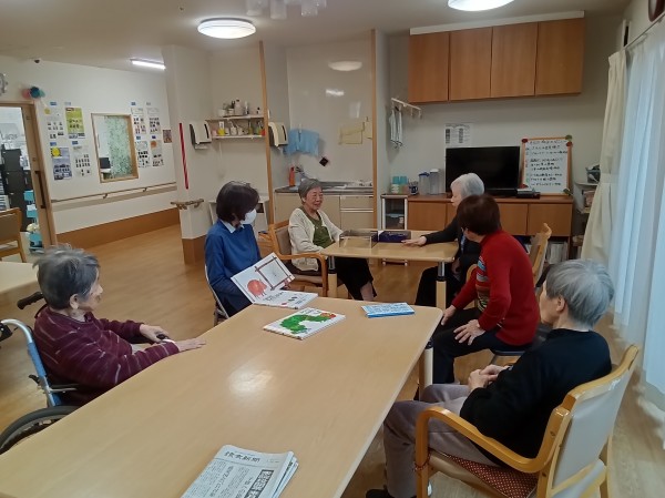 読み聞かせの後は「これは何だろう??」とご入居者様絵本に手を伸ばしパラパラとめくる姿も★ミ