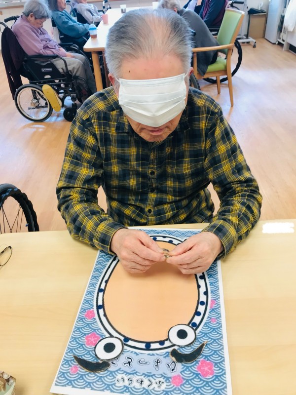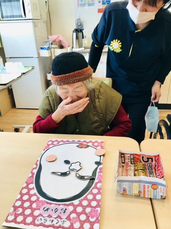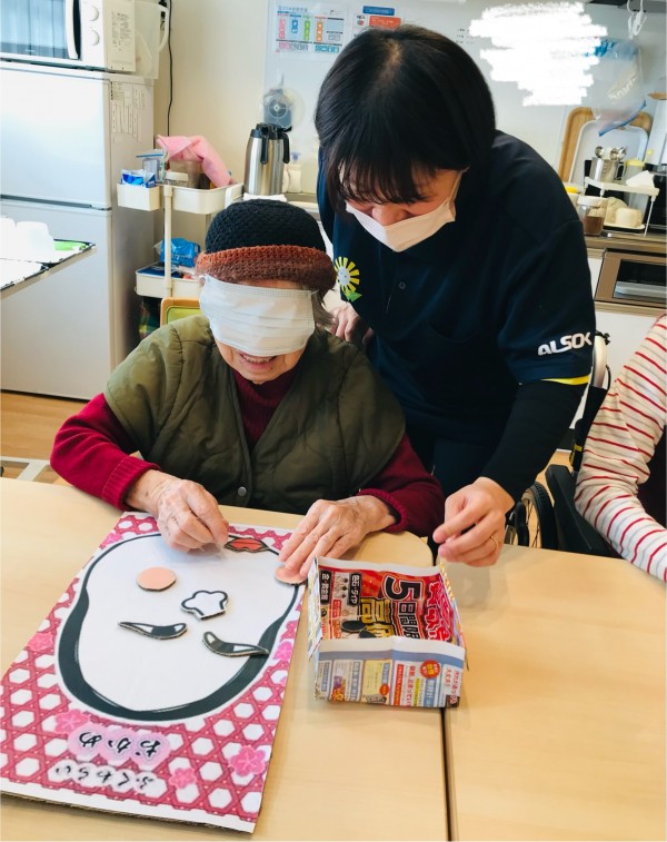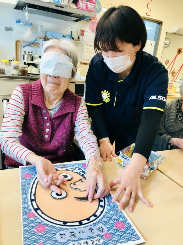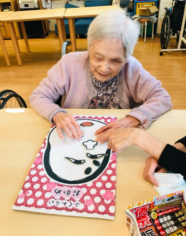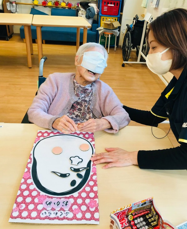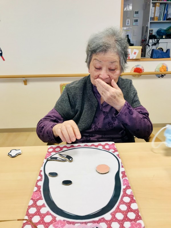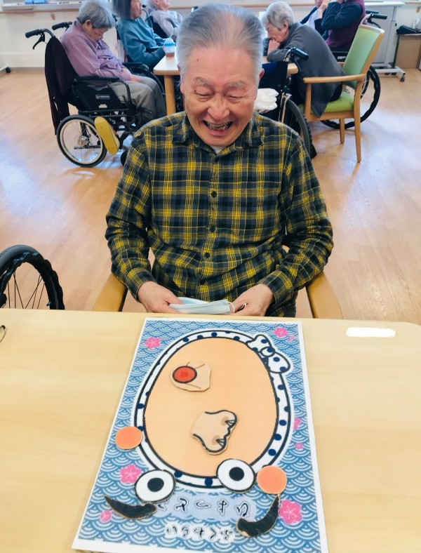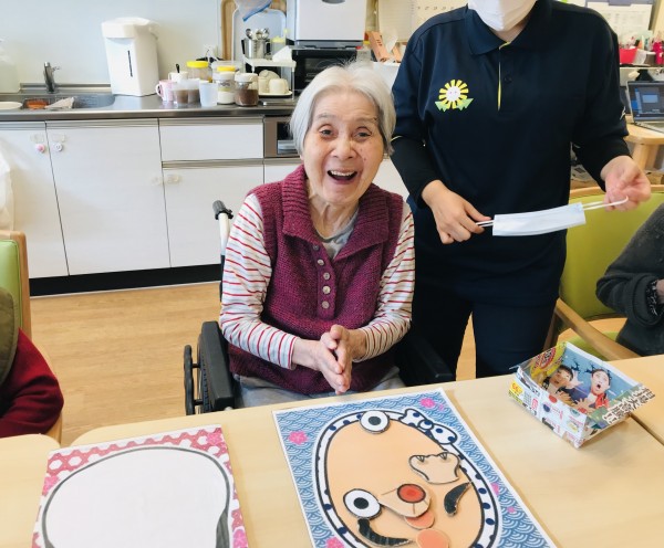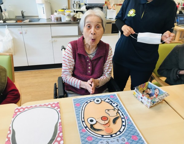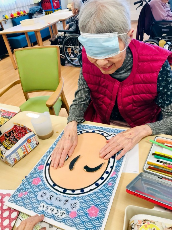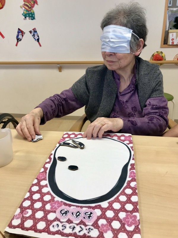 先日、1階のご利用者様には福笑いに挑戦していただきましたー!