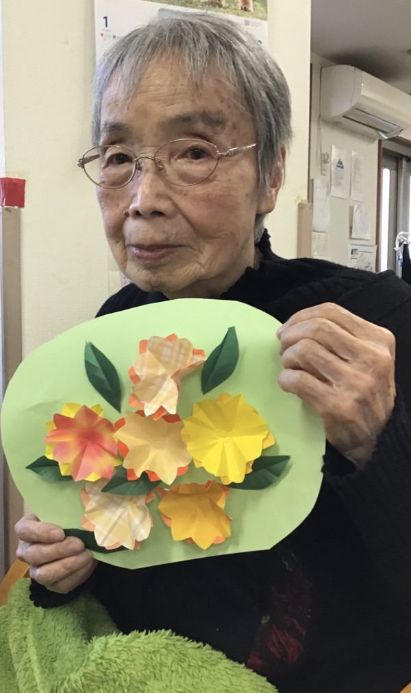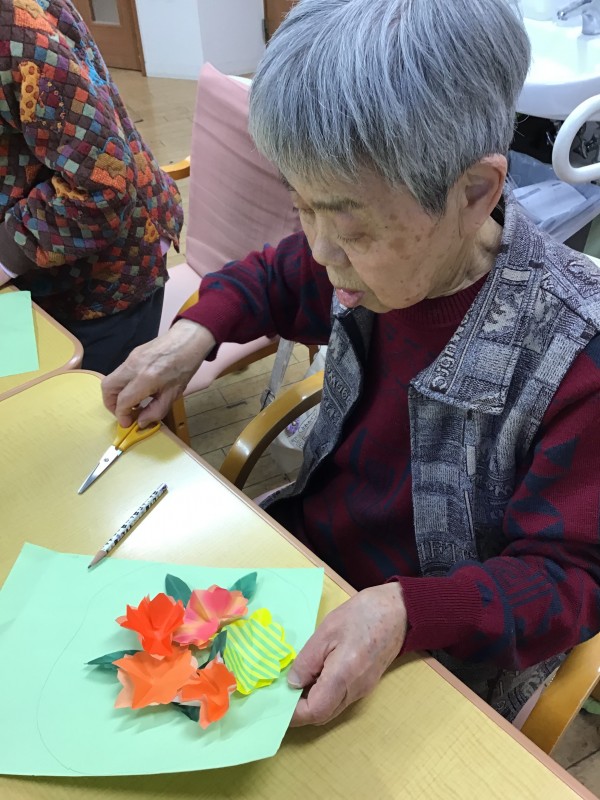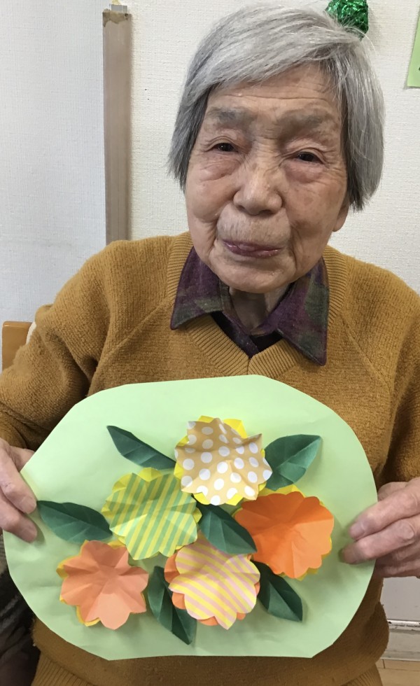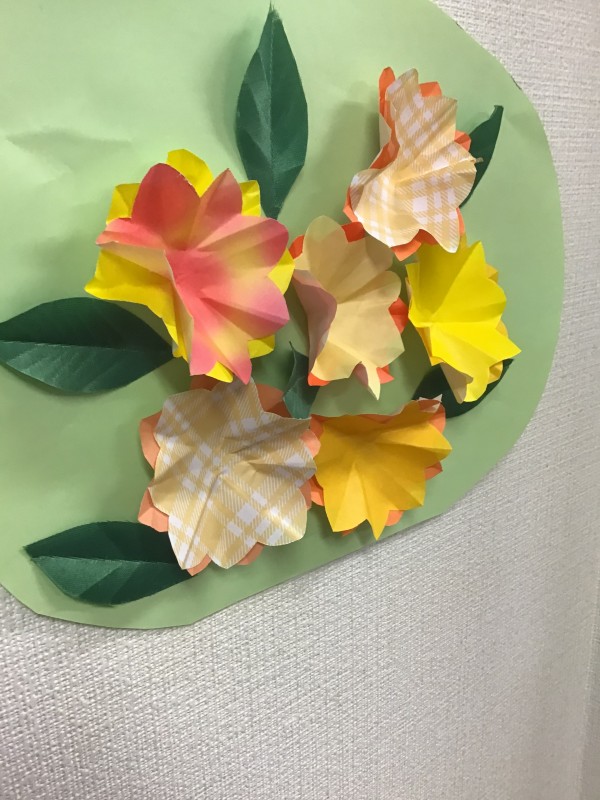 お花が出来たら、台紙に貼ってみましょう!