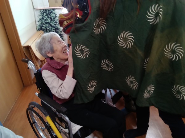 縁起物の獅子舞いがホームに来てくれました。