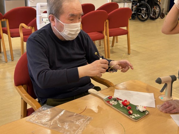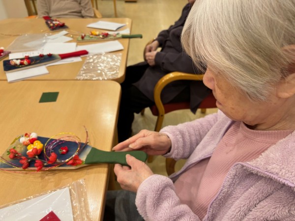 今回の羽子板作りには、男性のご入居者様も参加してくださいました。