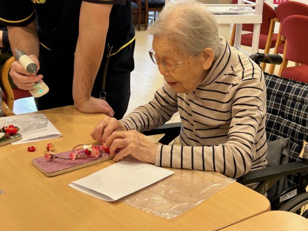 「毎回、季節感が楽しめるから」と、レクリエーションを楽しみにしてくださっている方も多く、今回もセンスの良い素敵な作品が出来上がりました。