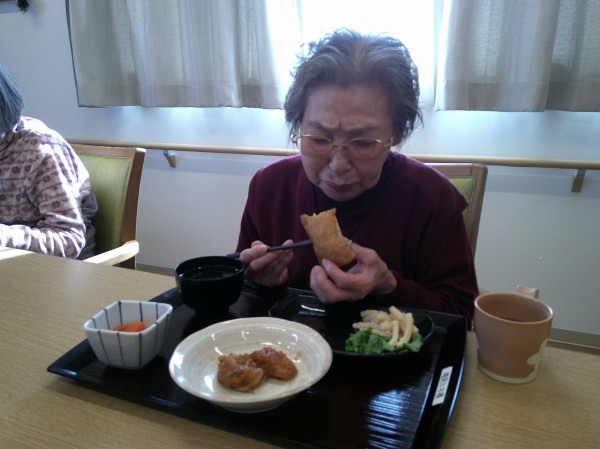 本日はおいなりさんですよ!とお声掛けすると、「おいなりさん作ってくれるんですか!?わぁうれしい楽しみ。」