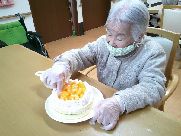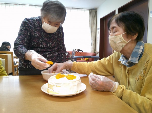 「ミカンどこに置いたらいいかしら?」「こんなに沢山乗せていいの~?!」と賑やかな雰囲気でケーキを作っていらっしゃいました♪♪