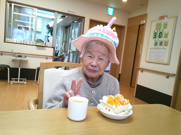 皆様でハッピーバースデーの歌を歌い、「おめでとうございます♪」「いつもありがとう♪」と周りの方からお祝いの言葉を伝えられると「ありがとうございます♪」と素敵な笑顔を見せて下さいました(^-^)