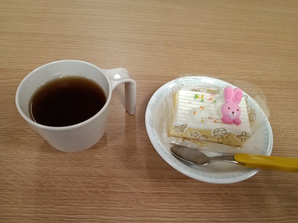 今月の誕生日会では、皆さんで作る手作りケーキではなく、お店のケーキにしてみました。