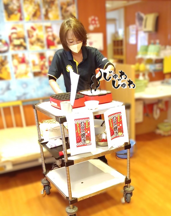 皆様の前にタコ焼き機を並べ、屋台風に準備すると