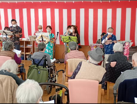 今回お隣デイサービスにて、ウクレレ演奏会がやることのことでまたまた参加さえていただきました!