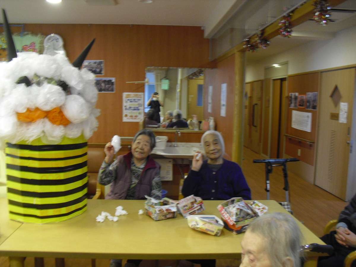 今年の2月3日は、1階2階合同で手作り鬼を的にして豆まきをおこないました(*^ー^*)