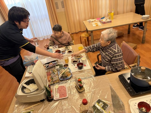 ご入居者と職員で手巻き寿司レクを行いました!