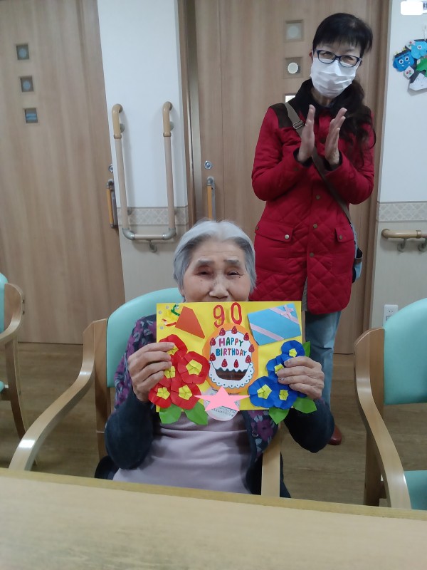 職員手作りの誕生日カードをお渡しすると、とても喜んで下さいました。