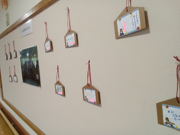 職員お手製の絵馬に、ご利用者様みなさんの今年の抱負や願い事を書いていただきました。