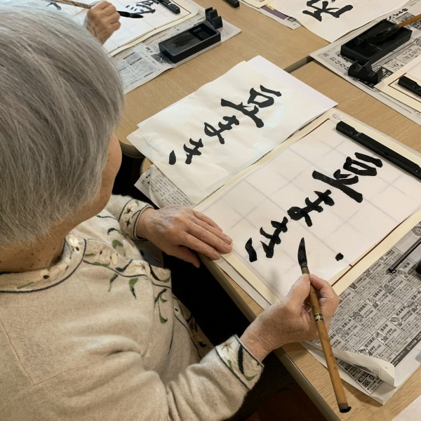 習字の先生がおいで下さり、皆さん真剣に書かれていました。