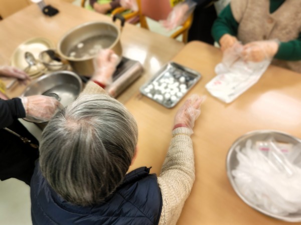 まずはお汁粉に入れる白玉団子づくりからスタート!