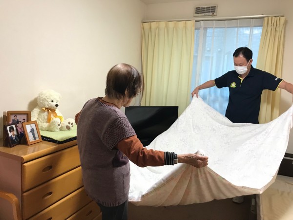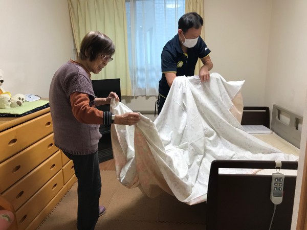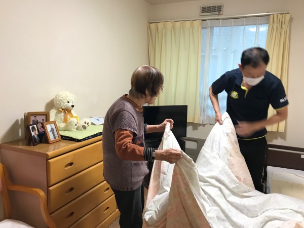 ●〇グループホームみんなの家・川崎久地「できることを一緒に~シーツ交換中の一幕~」〇●