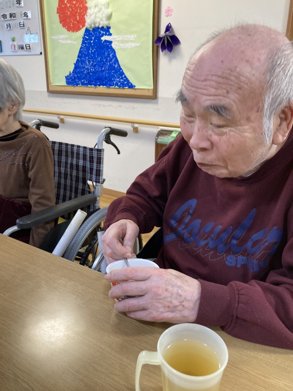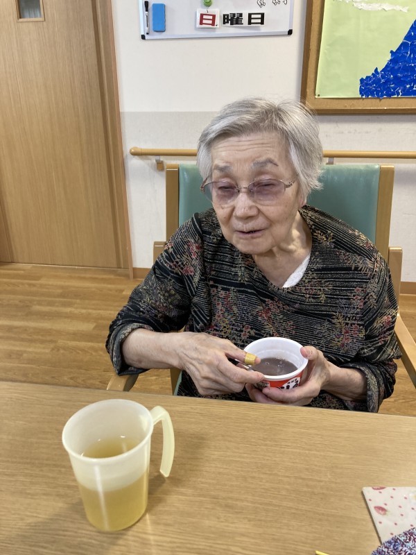 1月11日は鏡開きなので今日のおやつは「おしるこ」を召し上がって頂きました。