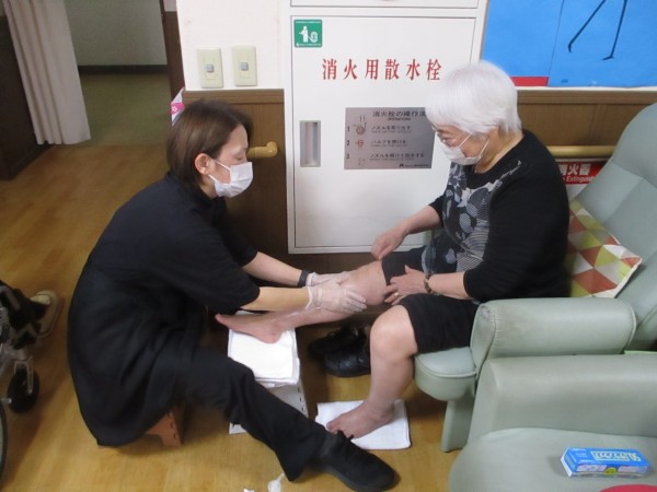 「最近ここがかゆくてね」「夜、足がつることがあるの」そんな何気ない会話の中から、気になる点が出てくることもあり、その内容は職員間で共有しています。その場でできることは簡単なケアのアドバイスを行い、必要に応じて今後の支援につなげていきます。