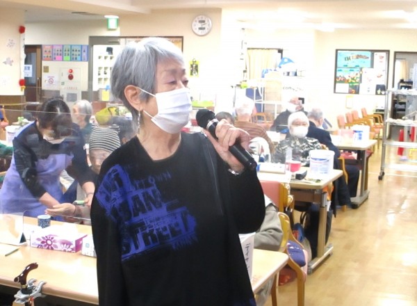 得意な歌を披露してくださる方もいれば、「久しぶりで緊張するね」と言いながらも挑戦される方、また、歌わずに拍手や掛け声、鳴り物で盛り上げてくださる方もいらっしゃいました。一曲終わるごとに大きな拍手。「上手!」「懐かしいね」「いい声だね」そんな声が自然と飛び交い、ホールは終始あたたかな雰囲気に包まれていました。