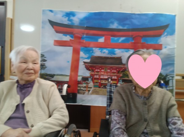 と、鳥居の写真を囲むように、自ら来られるご利用者様や誘導して来られるご利用者様など、撮影前には個々のポジションへの誘導をスタッフ総出で行いました。