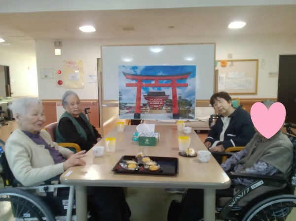 その後、甘酒を振る舞い、各テーブルではお正月の話で華を咲かせていました。